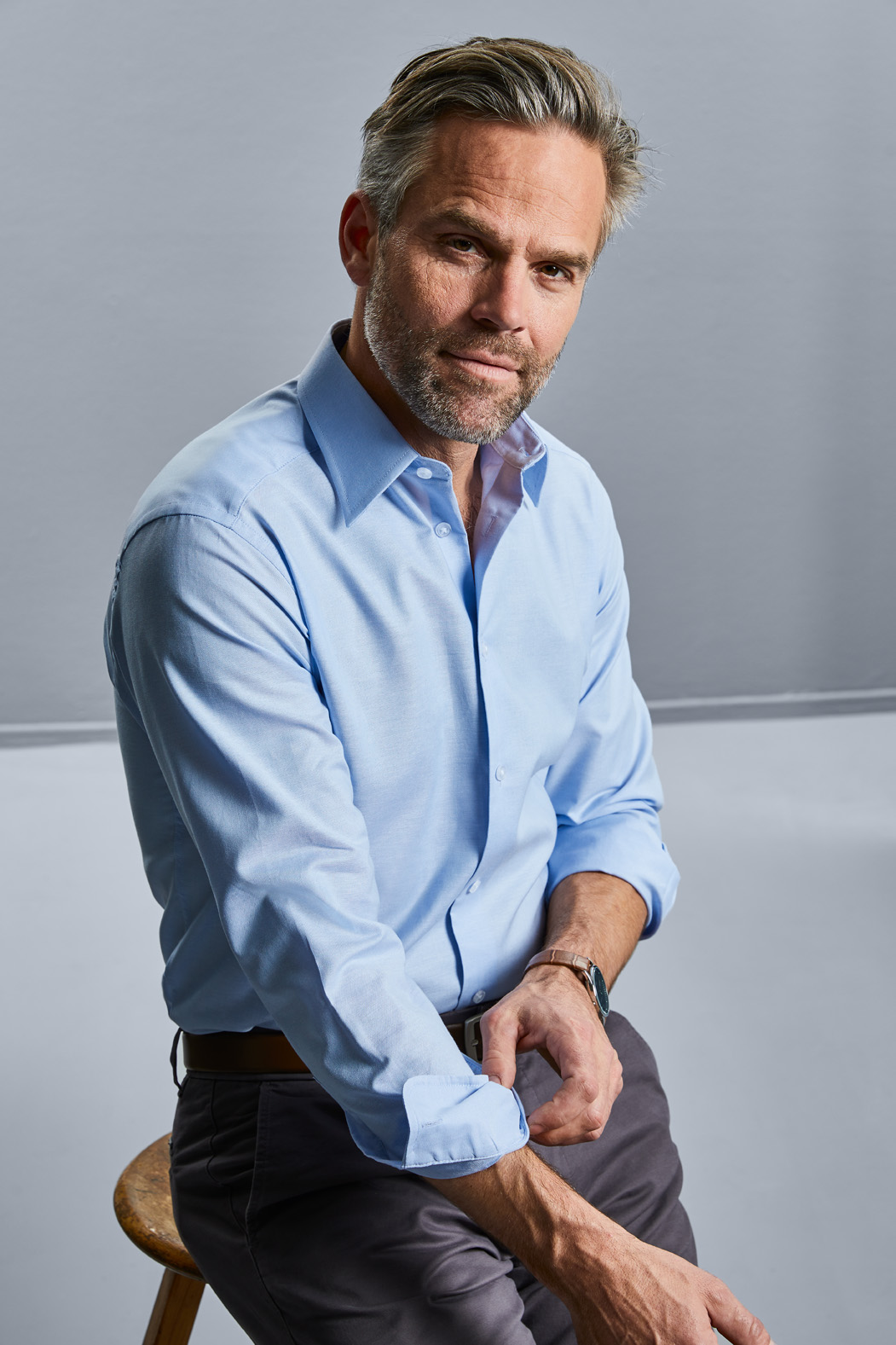 Camisa entallada de tejido oxford de fácil cuidado y manga larga de hombre
